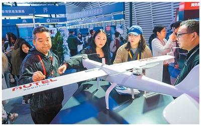 11月6日,2025年世界互联网大会“互联网之光”博览会现场,观众参观无人机。