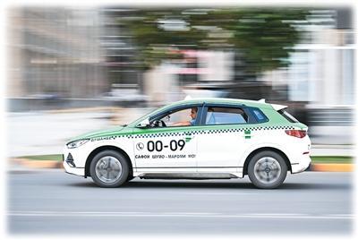 图为二〇二五年五月,一辆中国品牌新能源出租车行驶在塔吉克斯坦杜尚别的街道上。